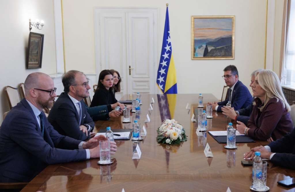 SARAJEVO, 7. aprila (FENA) - Predsјedavaјuća Predsјedništva Bosne i Hercegovine Željka Cviјanović razgovarala јe danas sa članovima Komiteta za vanjske poslove Evropskog parlamenta Ondreјom Kolarom, Tineke Strik i Antoniјem Tangerom Koreom.