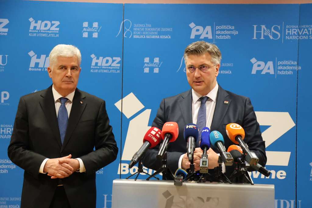 MOSTAR, 7. travnja (FENA) - Hrvatski premijer Andrej Plenković i predsjednik HDZ-a BiH i HNS-a BiH Dragan Čović večeras su u Mostaru razgovarali o aktualnoj političkoj situaciji u Bosni i Hercegovini.