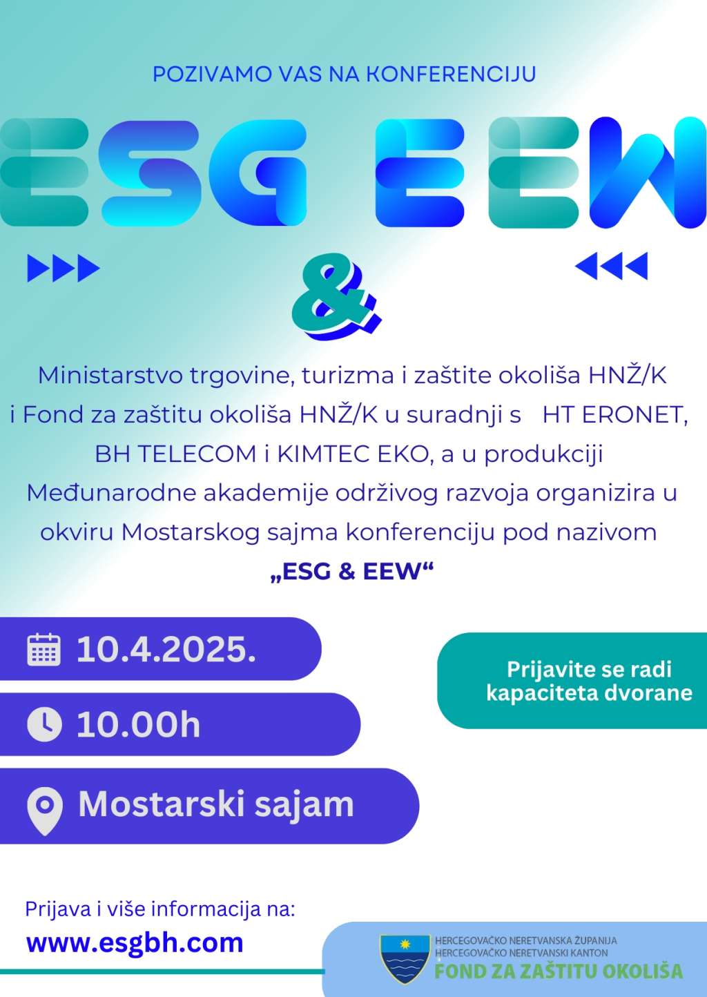 MOSTAR, 9. travnja (FENA) - Ministarstvo trgovine, turizma i zaštite okoliša HNŽ-a i Fond za zaštitu okoliša HNŽ-a u suradnji s HT ERONET-om, BH TELECOM-om i KIM TEC EKO-om, a u produkciji Međunarodne akademije održivog razvoja, u okviru Mostarskog sajma organizira akciju prikupljanja starih mobitela pod sloganom "Stari mobitel donesi, znanje i iskustvo odnesi".