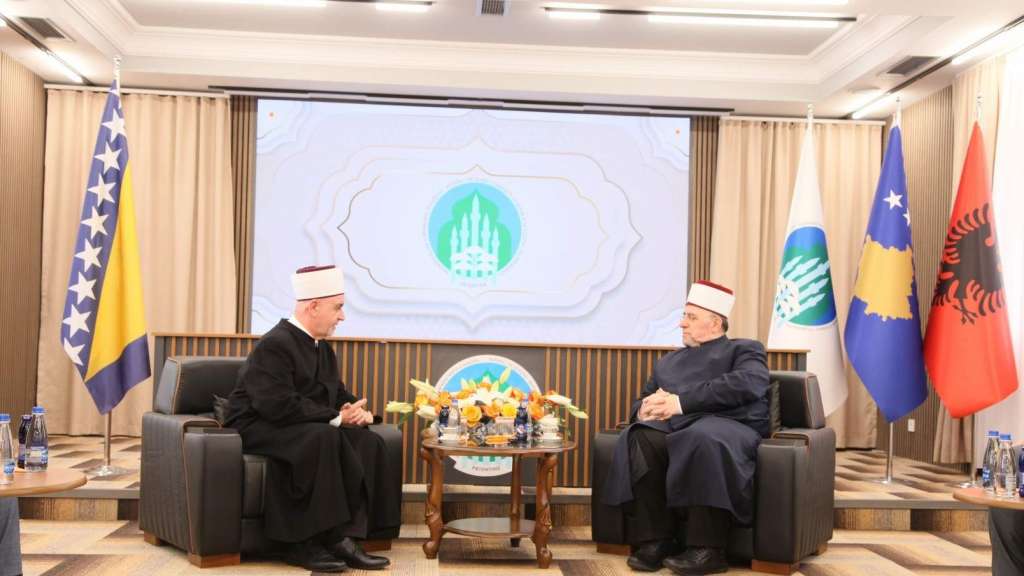 PRIŠTINA, 9. aprila (FENA) - Reisul-ulema Islamske zajednice u Bosni i Hercegovini Husein-ef. Kavazović danas se u Prištini sastao s Naim-ef. Ternavom, glavnim muftijom Islamske zajednice Kosova i njegovim saradnicima. Sastanak je održan u sjedištu Islamske zajednice Kosova, a tim susretom nastavljena je višednevna posjeta reisul-uleme Kavazovića islamskim zajednicama u Crnoj Gori, Sjevernoj Makedoniji i na Kosovu.