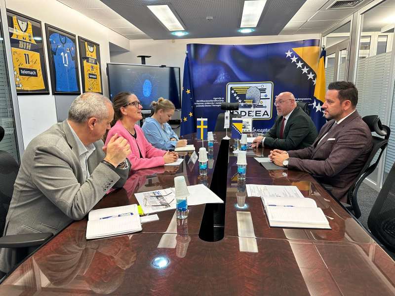 SARAJEVO, 11. aprila (FENA) - Direktor Agencije za identifikaciona dokumenta, evidenciju i razmjenu podataka BiH (IDDEEA) Almir Badnjević i predsjednik Visokog sudskog i tužilačkog vijeća BiH (VSTV BiH) Sanin Bogunić, održali su danas sastanak sa specijalnim predstavnikom Evropske unije za Bosnu i Hercegovinu ambasadorom Luigijem Sorecom.