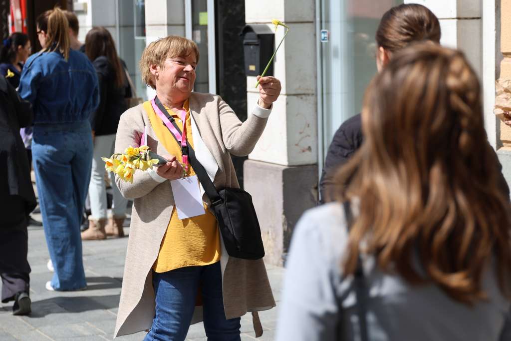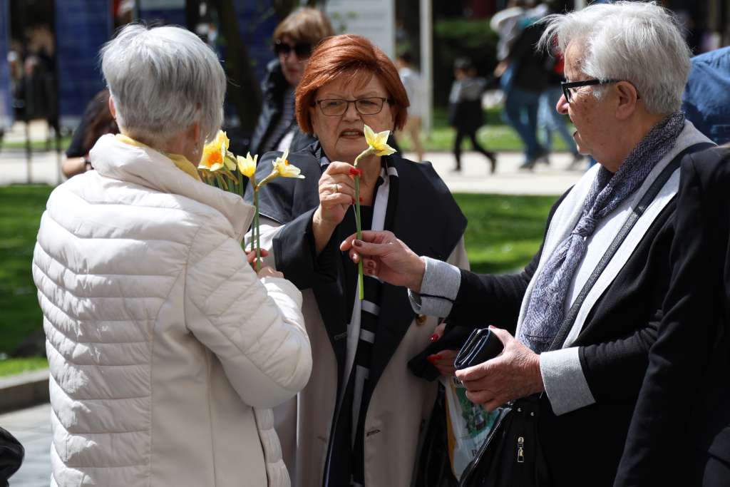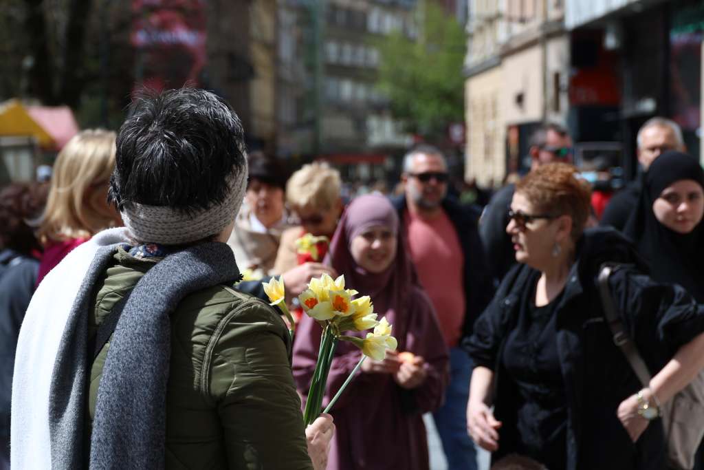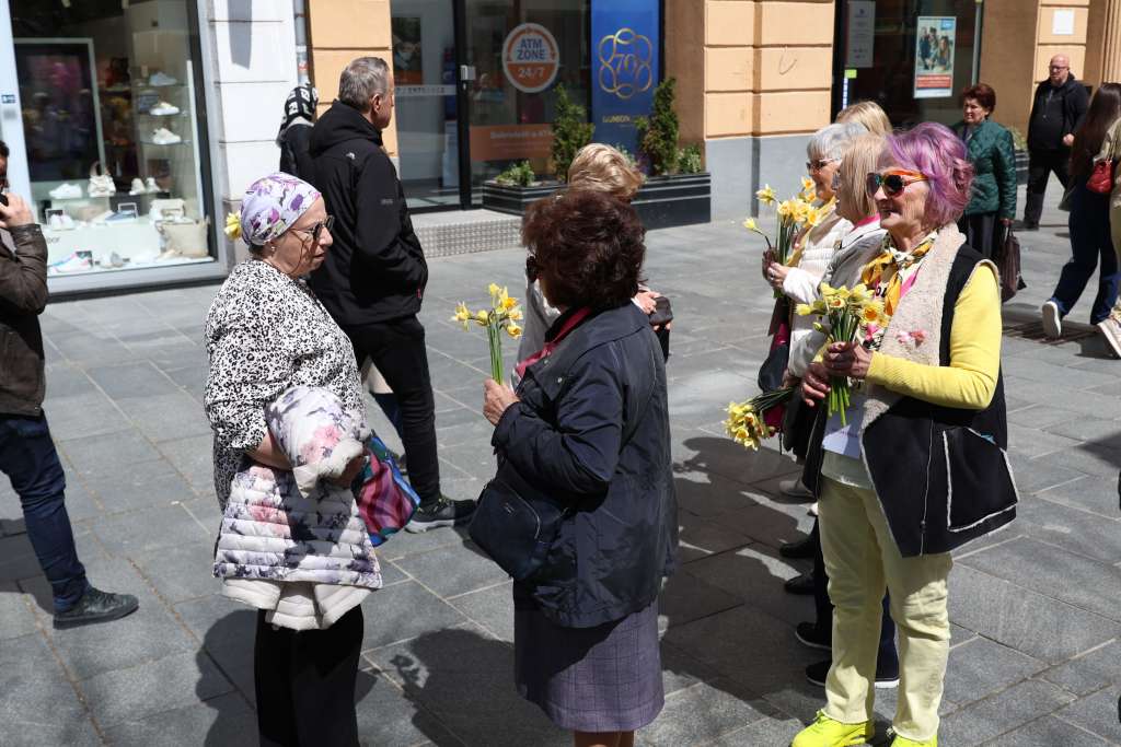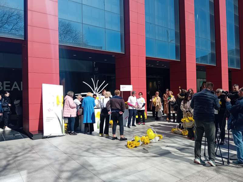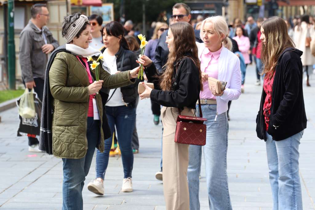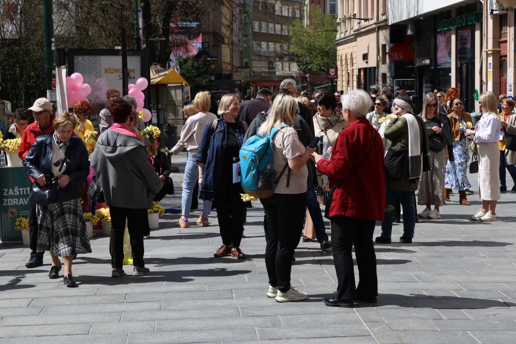 SARAJEVO, 12. aprila (FENA) - Udruženje "Renesansa" danas je na "Trgu Oslobođenja-Alija Izetbegović" u Sarajevu organiziralo tradicionalnu akciju "Dani narcisa". Članice, žene oboljele od karcinoma dojke okupile su se kako bi simboličnom akcijom pokušali podići društvenu svijest o važnosti preventivnih pregleda dojki u svrhu ranog otkrivanja raka dojke i, posljedično, smanjenja smrtnosti.
