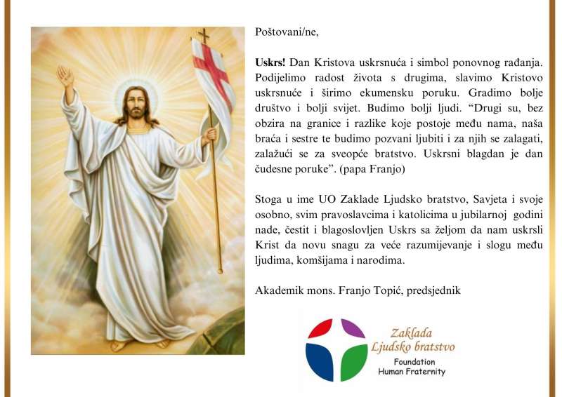 BRČKO, 17. aprila (FENA) - Gradonačenik Brčkog Siniša Milić i zamjenik gradonačelnika Anto Domić uputili su pigodnu čestitku u povodu nastupajućeg blagdana Uskrsa.