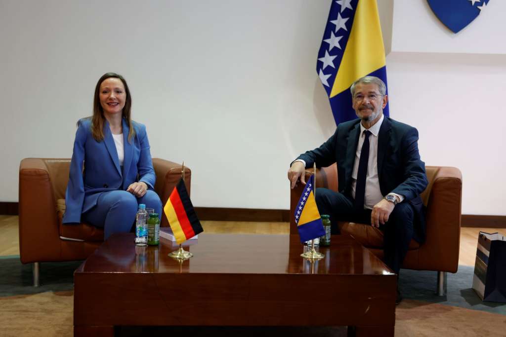 SARAJEVO, 17. aprila (FENA) - Poslanik u Predstavničkom domu Parlamentarne skupštine Bosne i Hercegovine Jasmin Imamović danas se susreo sa zastupnicom njemačkog Bundestaga Jasminom Hostert. Razgovarano je o aktuelnoj političkoj situaciji u Bosni i Hercegovini i načinima izlaska iz, kako je zajednički ocijenjeno, ozbiljne političke i sigurnosne krize koja je uzrokovana napadima aktuelnog rukovodstva bosanskohercegovačkog entiteta Republike Srpske na ustavni poredak Bosne i Hercegovine.