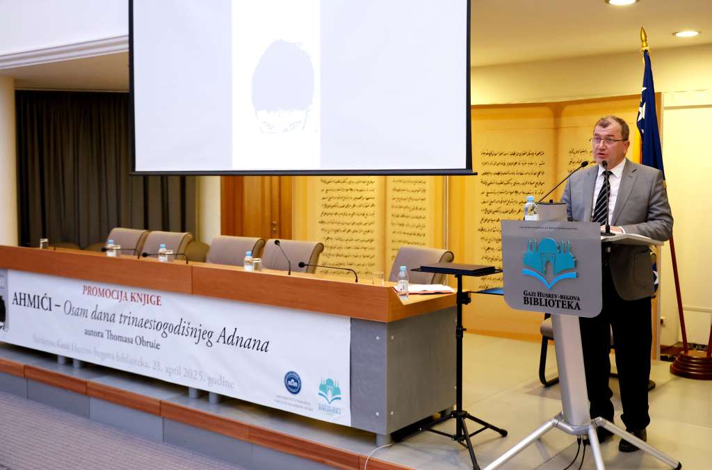 SARAJEVO, 23. aprila (FENA) - Knjiga "Ahmići: Osam dana trinaestogodišnjeg Adnana" austrijskog autora Thomasa Obruče predstavljena je danas u Sarajevu kao pokušaj pomirenja različitih verzija jednog ratnog zločina i opomena na zločine koji se upravo dešavaju u svijetu.