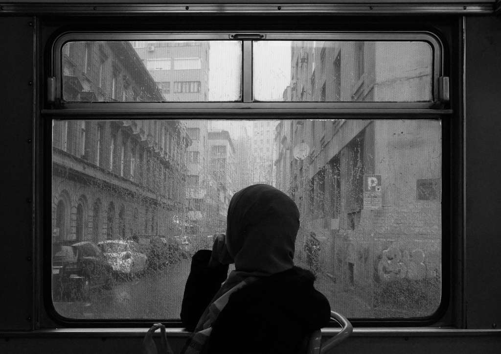 On the other hand, Hana Kazić’s photograph The Tram Girl presents a quiet, melancholic portrait of a young woman lost in thought as she gazes out a tram window. The black-and-white aesthetic amplifies the sense of uncertainty and nostalgia, while the reflection on the glass symbolizes the internal conflict between staying and leaving.