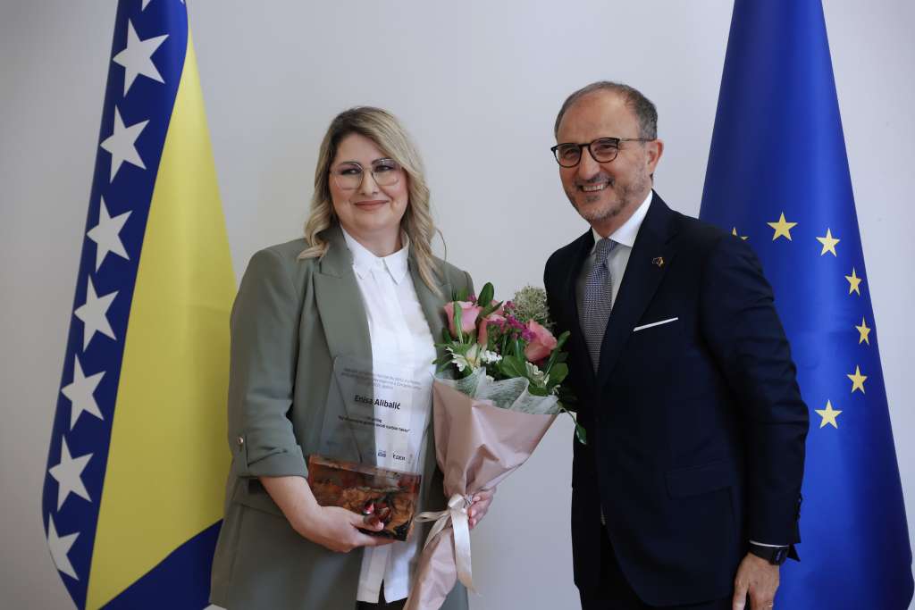 SARAJEVO, May 9 (FENA) – Enisa Alibalić, Ermina Salihović, and Ajla Ćehajić have been awarded the prize for the best journalistic stories covering Bosnia and Herzegovina’s European Union accession process for the year 2025. The awards were presented in Sarajevo today to mark Europe Day, organized by the Directorate for European Integration, the United Nations Population Fund (UNFPA), and the Journalists’ Association of BiH, with the attendance of the Head of the EU Delegation to BiH and EU Special Representative Luigi Soreca.