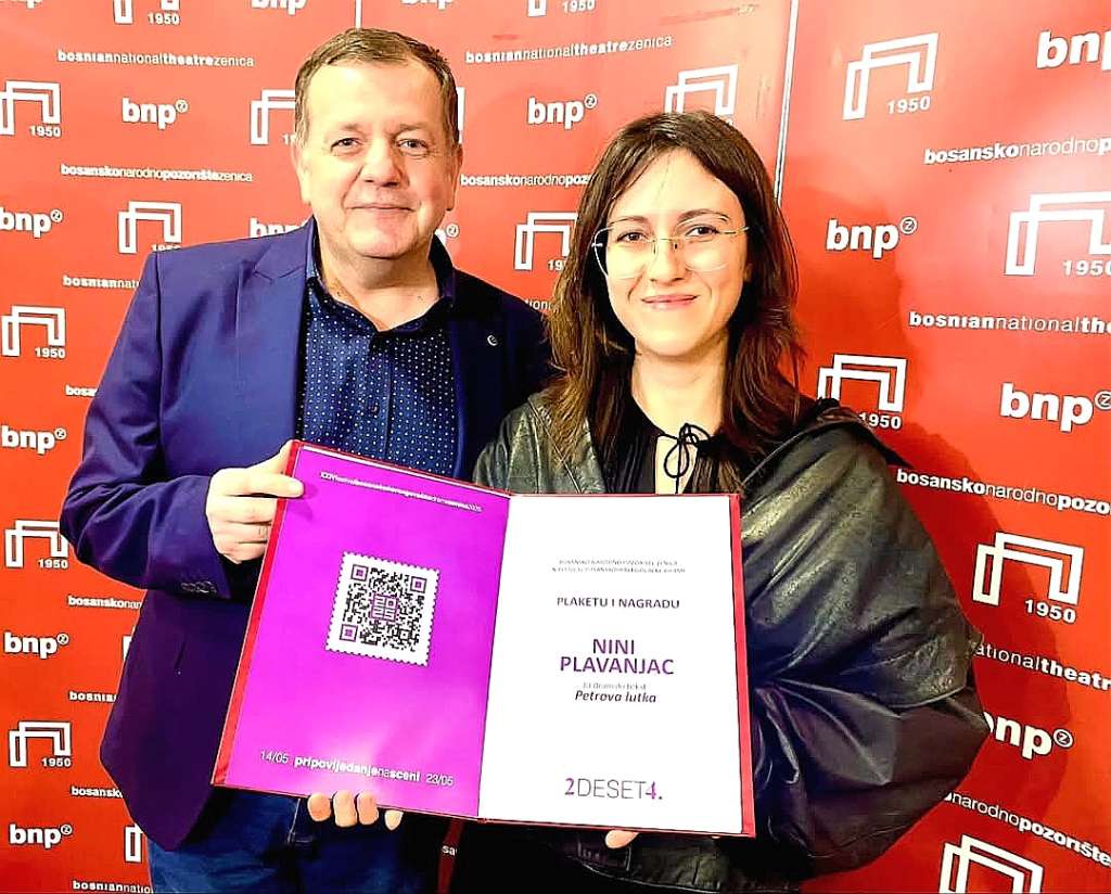 ZENICA, 20. maja (FENA) - U okviru Pratećeg programa 24. festivala bosanskohercegovačke drame - Zenica 2025. sinoć je u Bosanskom narodnom pozorištu upriličena i dodjela nagrade za najbolji neinscenirani bh. dramski tekst, koja je pripala Nini Plavljanac za tekst "Petrova lutka".