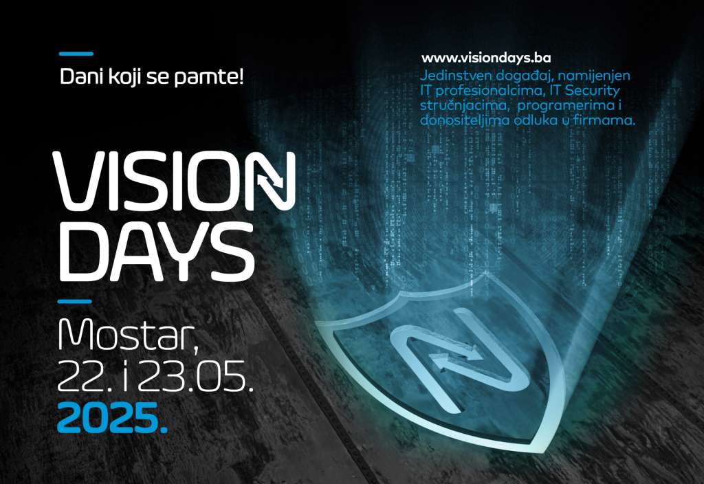 MOSTAR, 21. svibnja (FENA) - Drugo izdanje regionalne IT konferencije "Vision Days 2025." održat će se 22. i 23. svibnja u CineStaru Mostar, a ovogodišnja tema „IT sigurnost – vaš ključ uspjeha“ donosi najnovije uvide, trendove i izazove iz područja informacijske sigurnosti, pružajući sudionicima priliku za stručno usavršavanje i umrežavanje.
