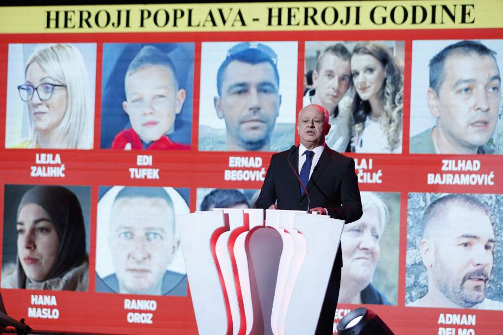 -Država zarobljena u svojim podjelama kao da je brojne Bosance i Hercegovce u domovini i svijetu motivirala na postizanje izvanrednih rezultata. Nažalost, njihove uspjehe zasjenila je kataklizma. U noći s 3. na 4. listopada smrtonosna je bujica odnijela 27 života. Ta je tragedija ujedinila sve u BiH i susjedstvu. Pokazujući humano lice, svi su barem malo pokušavali ublažili bol i pomoći žiteljima Jablanice, Konjica, Kiseljaka, Kreševa, Fojnice. A iz poplava - isplivale su stotine heroja. Zato večeras, prvi put u ove naše 24 godine na Večernjakovu pečatu, od svih ovih uspješnih gospodarstvenika, znanstvenika, sportaša, lobista i svih drugih koje ste večeras vidjeli nećemo izabrati Osobu godine. Nego ćemo, prisjećajući se tragičnih poplava, s tugom, ali i ponosom, proglasiti Heroje godine, kazao je Pavković proglašavajući dobitnike glavne nagrade.