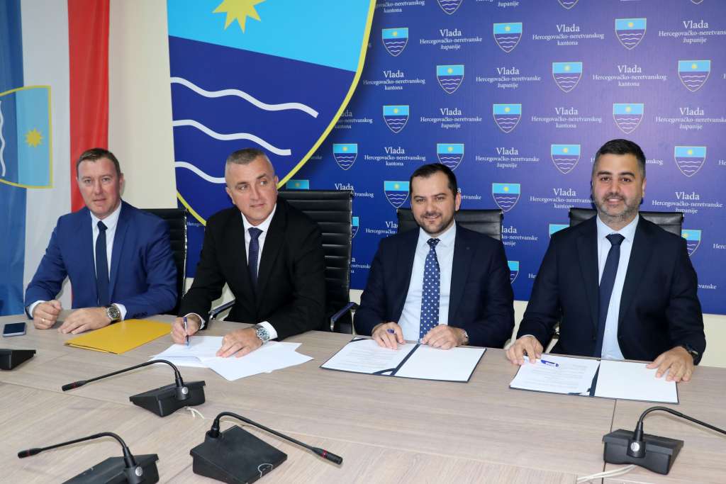 MOSTAR, 26. svibnja (FENA) - Ugovori o subvencioniranju Međunarodne zračne luke Mostar iz Proračuna HNŽ-a za 2025. godinu, a u skladu s prethodno usvojenim odlukama na sjednicama Vlade, potpisani su u ponedjeljak u zgradi Vlade Hercegovačko-neretvanske županije (HNŽ).