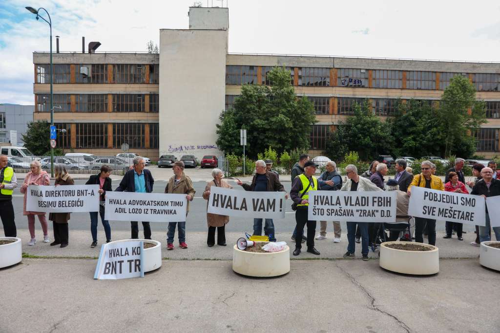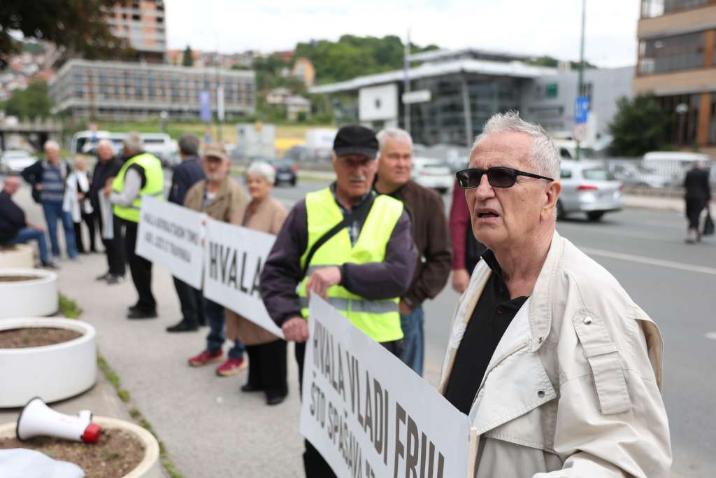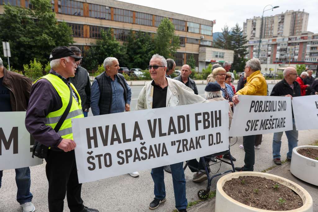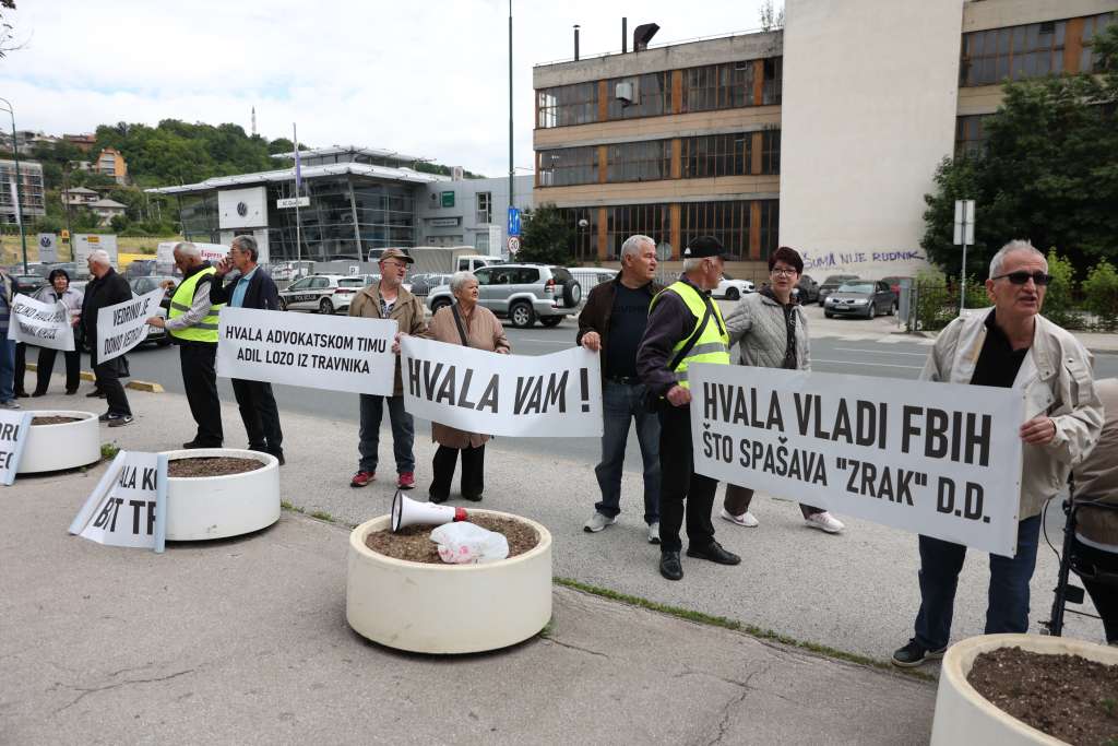 SARAJEVO, 26. maja (FENA) - Penzioneri kompanije Zrak d.d. Sarajevo danas su se okupili ispred zgrade Vlade FBiH kako bi izrazli zahvalnost premijeru Nerminu Nikšiću i ministru energije, rudarstava i industrije Vedranu Lakiću na spašavanju te firme i njihovih potraživanja.