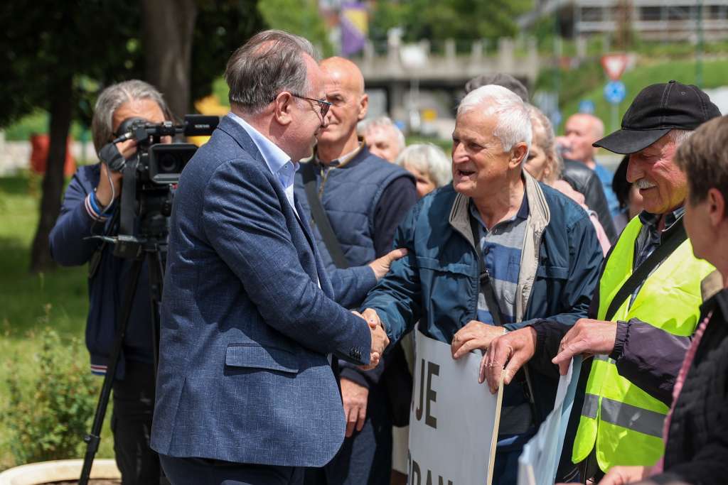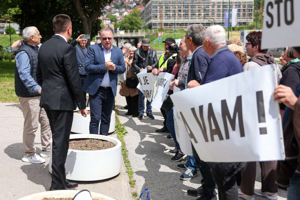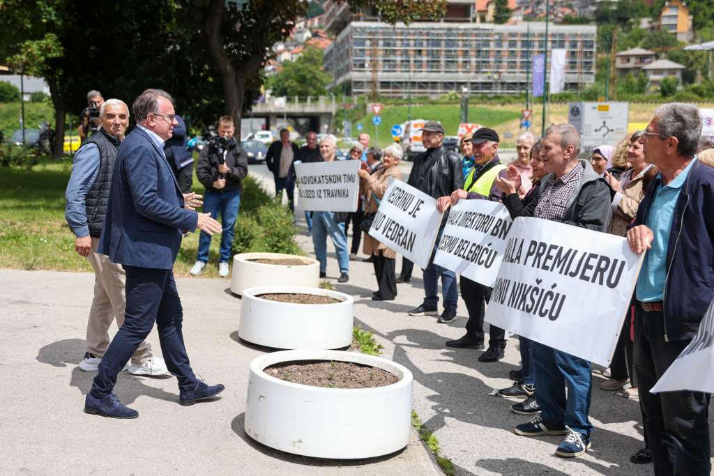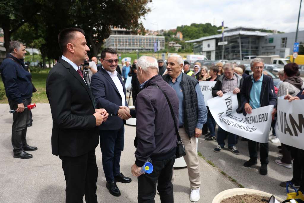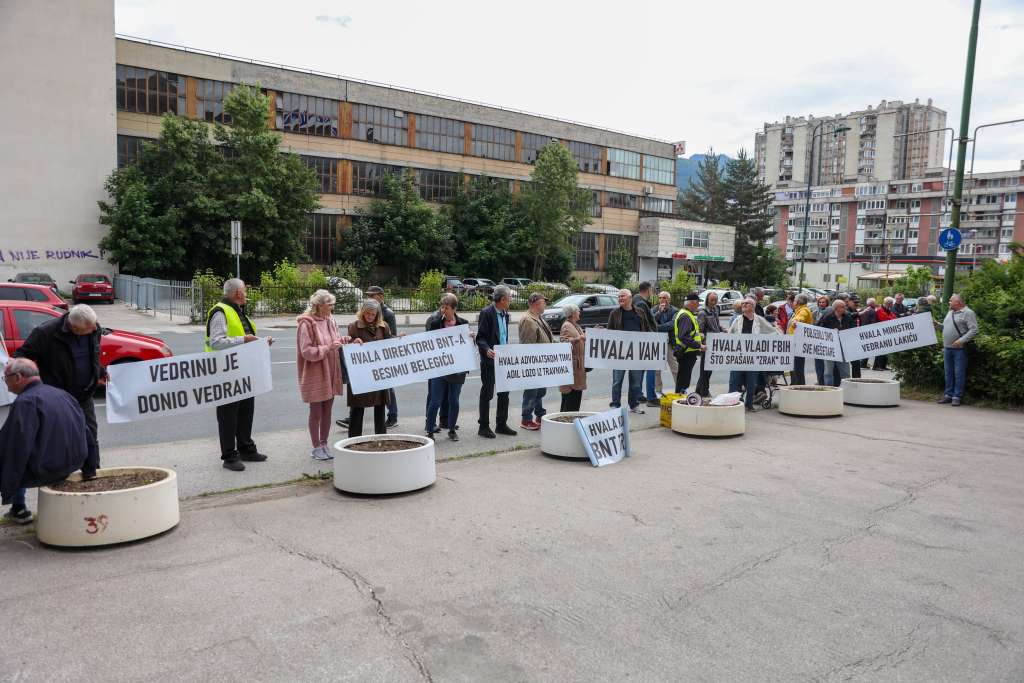 SARAJEVO, 26. maja (FENA) - Penzioneri kompanije Zrak d.d. Sarajevo danas su se okupili ispred zgrade Vlade FBiH kako bi izrazli zahvalnost premijeru Nerminu Nikšiću i ministru energije, rudarstava i industrije Vedranu Lakiću na spašavanju te firme i njihovih potraživanja.