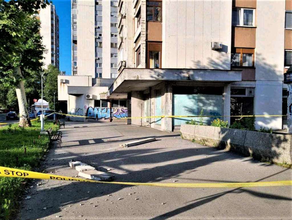 TUZLA, 1. juna (FENA) - U naselju Irac u tuzlanskoj Rudarskoj ulici danas je došlo do obrušavanja dijela balkonskog stuba sa stambene zgrade. Komadi betona završili su na travnjaku i saobraćajnici, a pukom srećom niko nije povrijeđen.