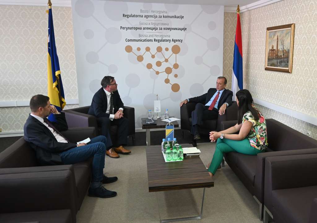 SARAJEVO, 3. juna (FENA) - Ambasador Republike Slovenije Damijan Sedar i njegov ekonomski savjetnik Marko Polajžer posjetili su danas Regulatornu agenciju za komunikacije (RAK) gdje su se sastali sa direktorom Draškom Milinovićem.
