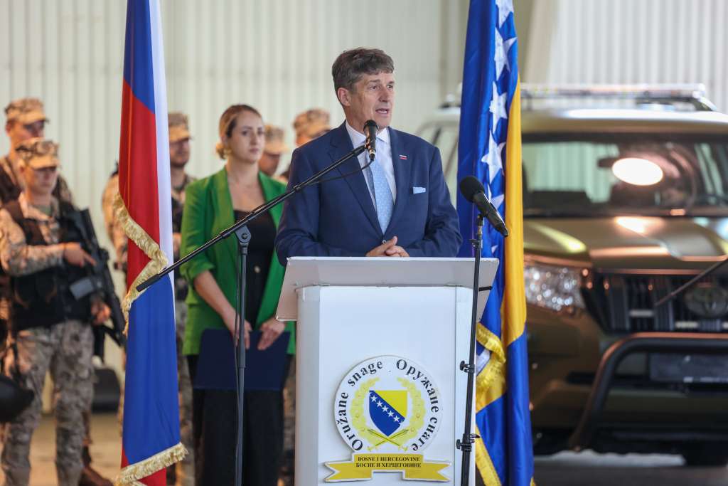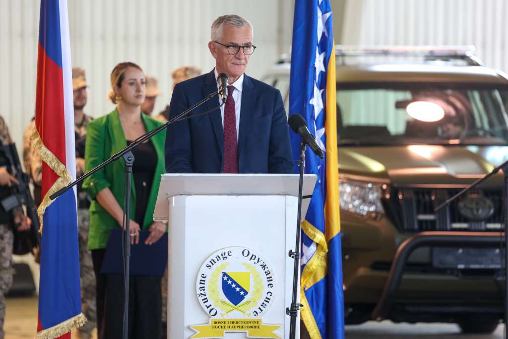 SARAJEVO, 10. juna (FENA) - U kasarni „Rajlovac“ Oružanih snaga Bosne i Hercegovine danas je obavljena službena primopredaja specijalizovanih terenskih vozila doniranih za potrebe Vojne policije OS BiH. Donaciju je omogućila Vlada Republike Slovenije u okviru NATO-ove Inicijative jačanje odbrambenih kapaciteta BiH (DCBI).