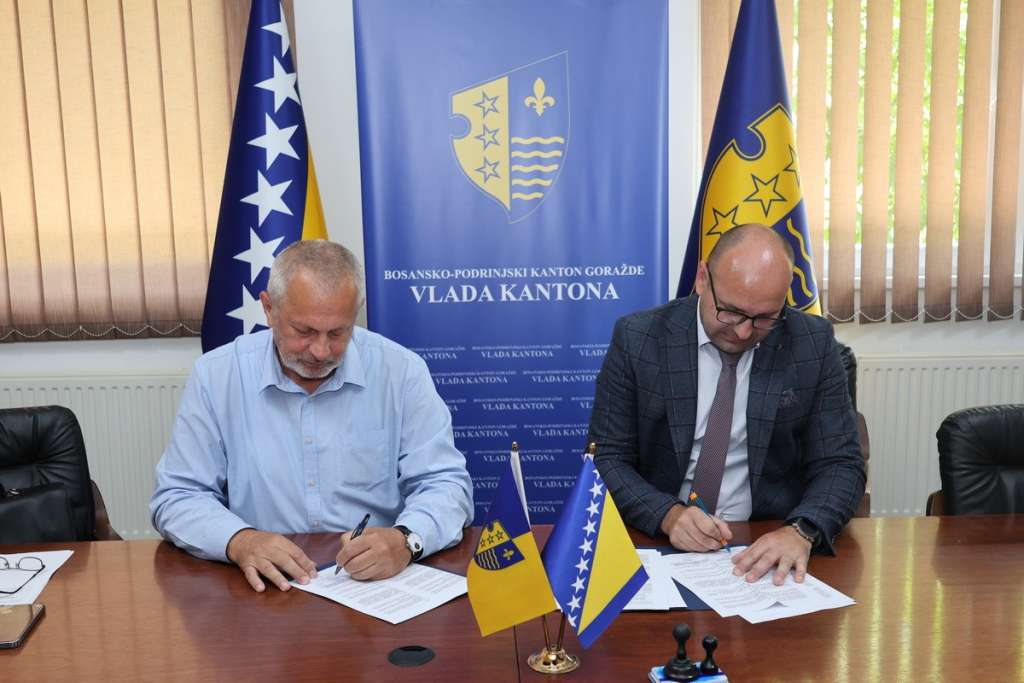 GORAŽDE, 12. juna (FENA) - Ministar za urbanizam, prostorno uređenje i zaštitu okoline Bosanskopodrinjskog kantona (BPK) Goražde Bojan Krunić i pomoćnik ministra prostornog uređenja Federacije BiH Zdravko Buljeta potpisali su danas ugovore o realizaciji tri značajna projekta koji za cilj imaju poboljšanje energijske efikasnosti u objektima na prostoru tog kantona.