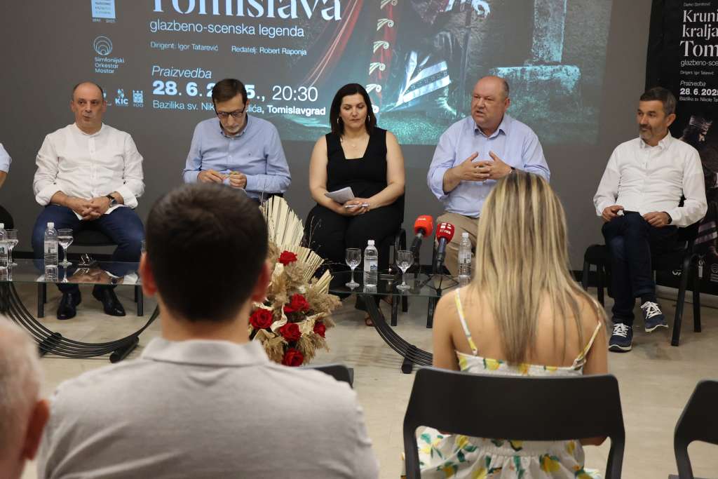 MOSTAR, 12. lipnja (FENA) – U Hrvatskom domu herceg Stjepana Kosače u Mostaru u četvrtak je predstavljen projekt ''Glazbeno-scenska legenda 'Krunidba kralja Tomislava'''. Praizvedba ovog djela bit će upriličena 28. lipnja u bazilici sv. Nikole Tavelića u Tomislavgradu, u okviru obilježavanja 1100. obljetnice Hrvatskog Kraljevstva.