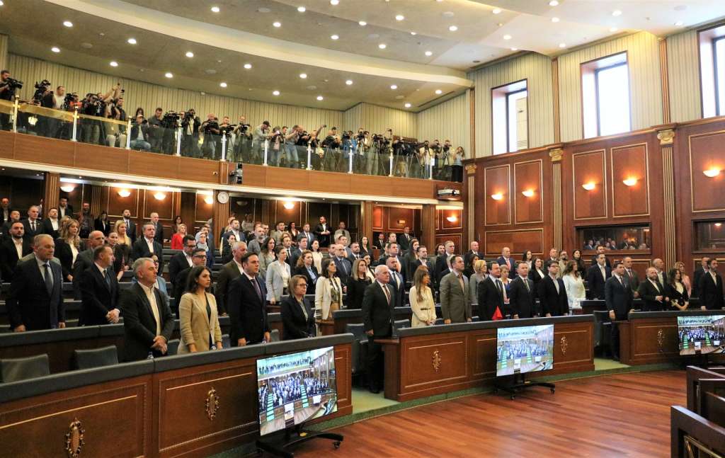 PRIŠTINA, 17. lipnja (FENA) – Konstituirajuća sjednica Skupštine Kosova prekinuta je i danas po 33. put, usljed nedovoljnog broja glasova zastupnika za prijedlog Samoopredjeljenja da se za kanditata te stranke za predsjednika skupštine, Albulenu Haxhiu, glasa tajnim putem.