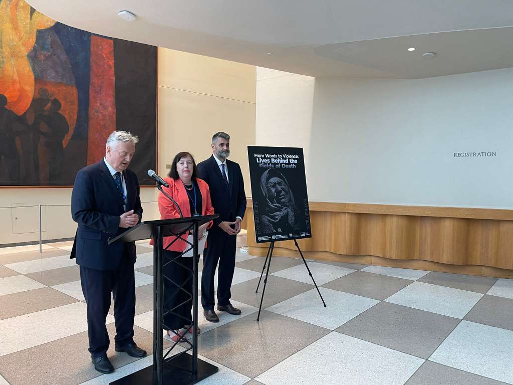 NEW YORK, 18. juna (FENA) - U sklopu obilježavanja 30. godišnjice genocida u Srebrenici, kao i 11. jula kao Međunarodnog dana sjećanja na genocid u Srebrenici 1995. godine, u sjedištu Ujedinjenih nacija u New Yorku otvorena je izložba Memorijalnog centra Srebrenica i BIRN BiH pod nazivom: “Od riječi do nasilja: Životi iza polja smrti”. Izložbu je organizovala Stalna misija Bosne i Hercegovine pri Ujedinjenim nacijama, u saradnji sa Uredom Specijalnog savjetnika Generalnog sekretara UN-a za prevenciju genocida i Odjeljenjem UN-a za globalne komunikacije.