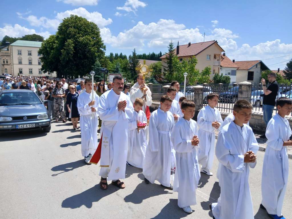 TOMISLAVGRAD, 19. lipnja (FENA) – Svetom misom u župnoj crkvi sv. Mihovila Arkanđela i procesijom kroz središte mjesta, u Tomislavgradu je u četvrtak svečano obilježena svetkovina Tijelova.