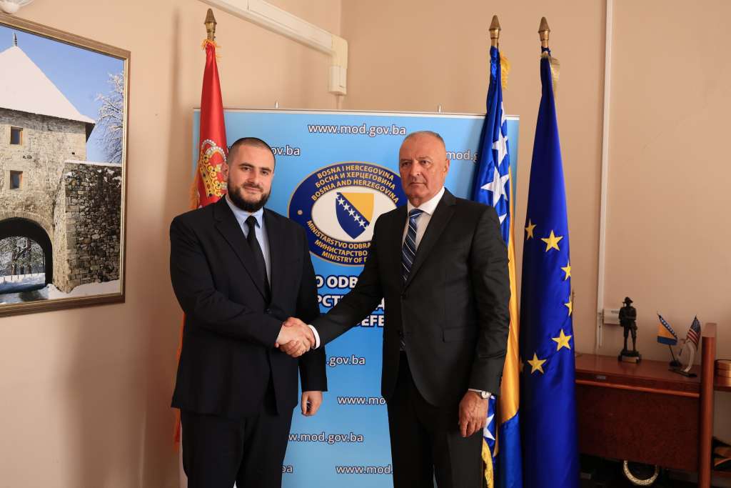 SARAJEVO, 23. juna (FENA) - Zamjenik predsjedavajuće Vijeća ministara Bosne i Hercegovine i ministar odbrane BiH Zukan Helez, zajedno sa pomoćnikom ministra za međunarodnu saradnju Zoranom Šajinovićem, Mišom Božičkovićem pomoćnikom ministra za finansije i budžet, danas je primio u zvaničnu posjetu ministra za pomirenje, regionalnu saradnju i društvenu stabilnost Republike Srbije Usamu Zukorlića.
