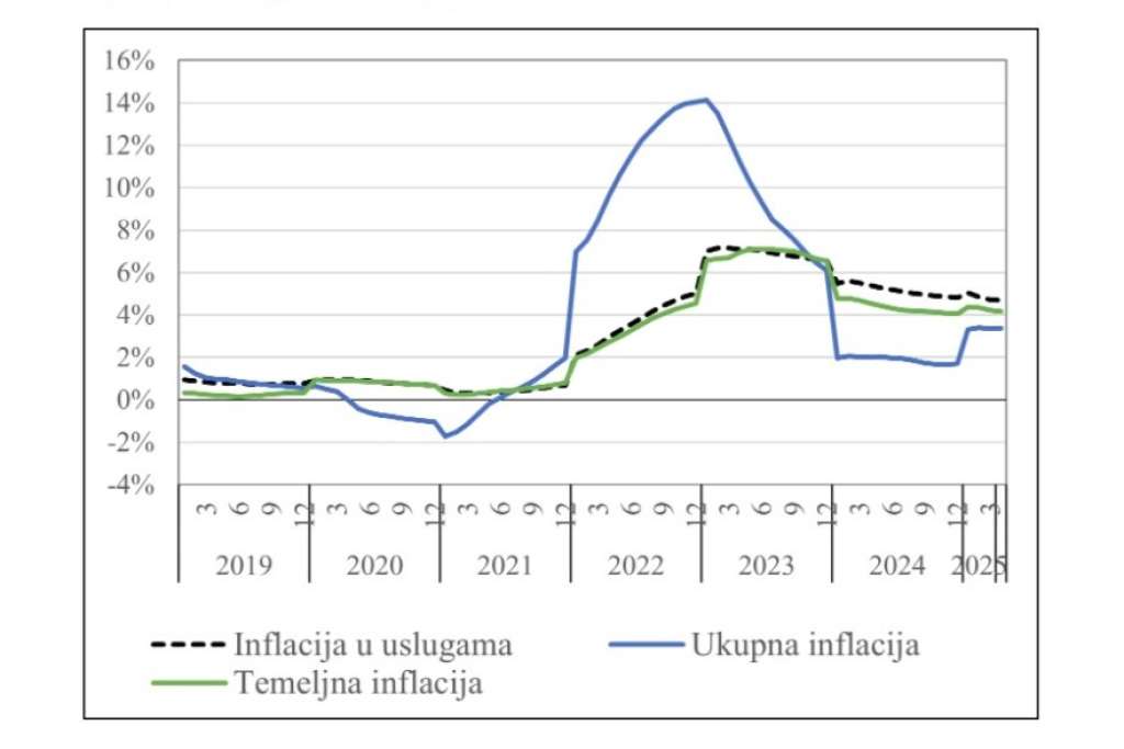 SARAJEVO, 4. jula (FENA) - Temeljem dostupnih, zvaničnih statističkih podataka za indekse potrošačkih cijena u BiH, i pripadajućih pondera, Centralna banka Bosne i Hercegovine (CBBiH) procijenila je godišnju temeljnu inflaciju za pet mjeseci 2025. na 4,18 posto.
