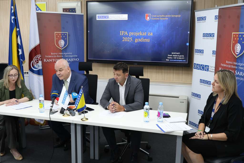SARAJEVO, 7. jula (FENA) - Ured za borbu protiv korupcije Kantona Sarajevo i Misija OSCE-a u BiH danas su u Sarajevu zvanično pokrenuli novi IPA projekt za 2025. koji bi trebao ojačati zajednički rad na borbi protiv korupcije te promovisati transparentnost i integritet u javnim institucijama.