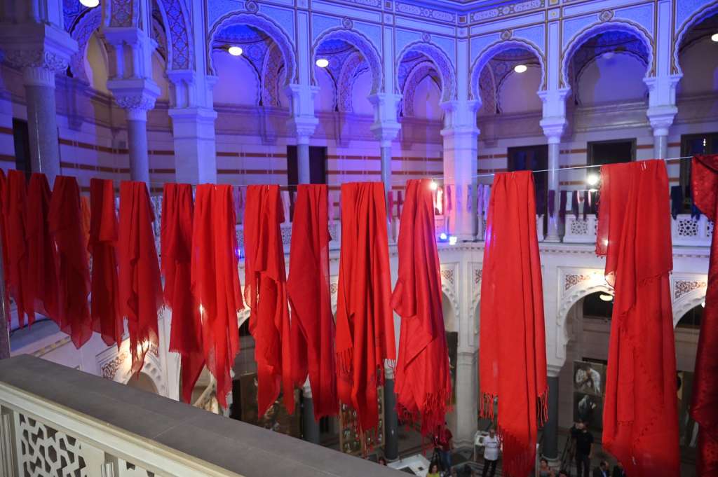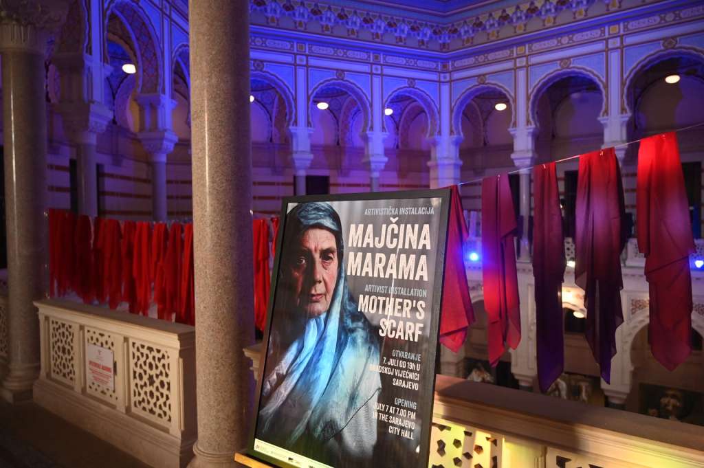 SARAJEVO, July 8 (FENA) – The exhibition 'Mothers' by New Zealand artist Nour Hassan opened last night at Sarajevo City Hall as part of the commemoration of the 30th anniversary of the Srebrenica genocide. Alongside it, the art installation 'Mother's Scarves' was also unveiled, symbolically representing the scarves and shawls worn by the mothers, sisters, and wives of Srebrenica, as well as by other women across Bosnia and Herzegovina, the region, and the world, in everyday life and especially during commemorations for their loved ones.