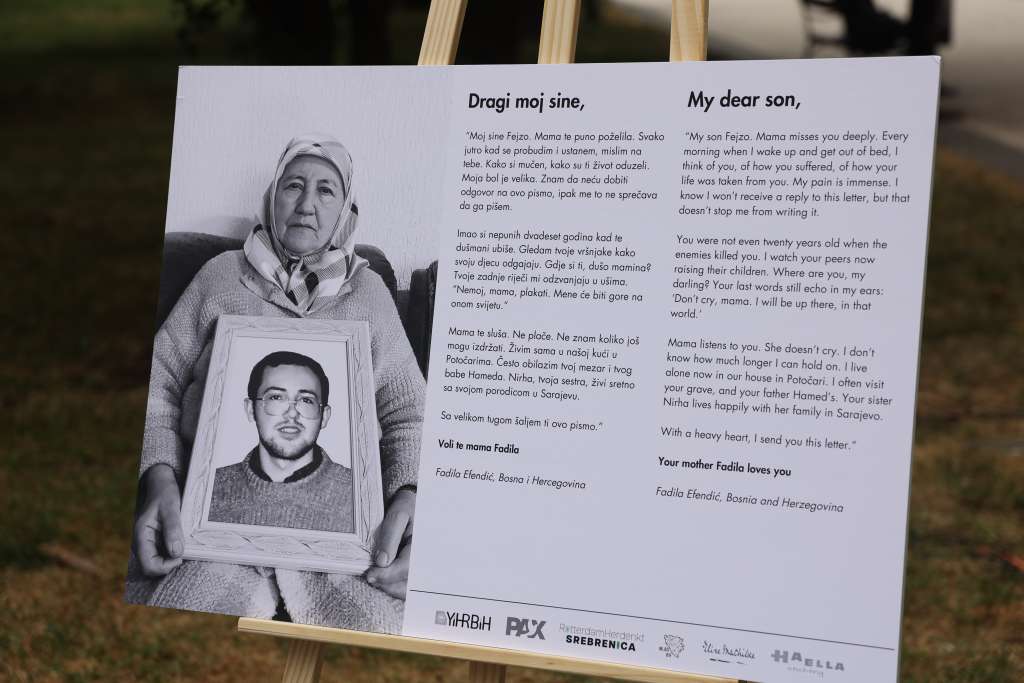 SARAJEVO, 10. juli (FENA) - Trg fra Grge Martića u Sarajevu bio je danas mjesto ispunjeno empatijom i bolnim emocijama u znak sjećanja na nedužne žrtve genocida u Srebrenici. Otvorena je tu izložba "Dragi moji - Srebrenička pisma", gdje su čitana pisma preživjelih žrtava upućena očevima, djedovima, braći i sinovima ubijenim u Srebrenici. Građani su mogli osjetiti bol, ljubav i sjećanje onih koji su izgubili svoje najmilije u genocidu.