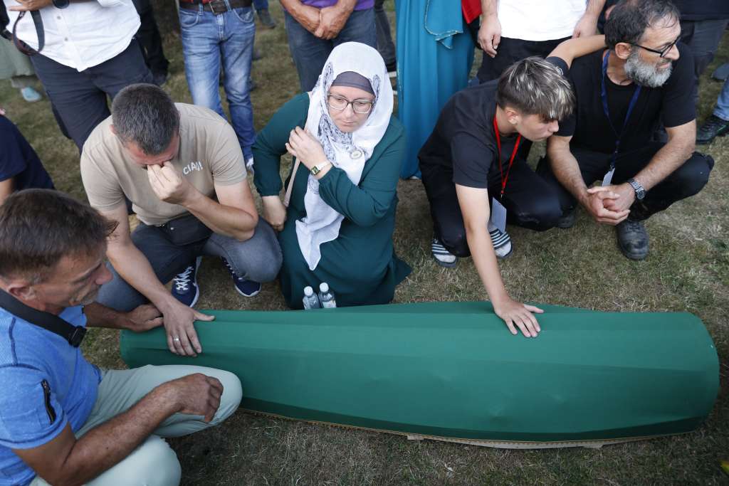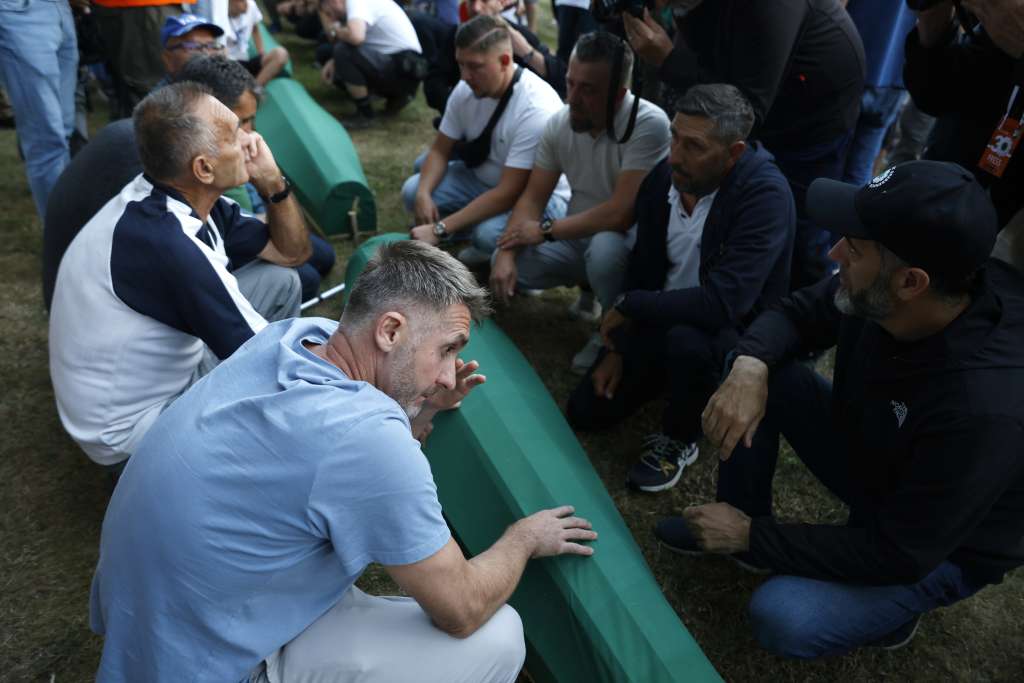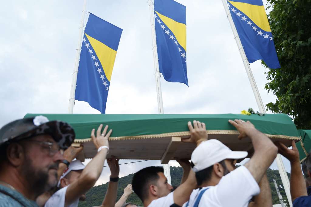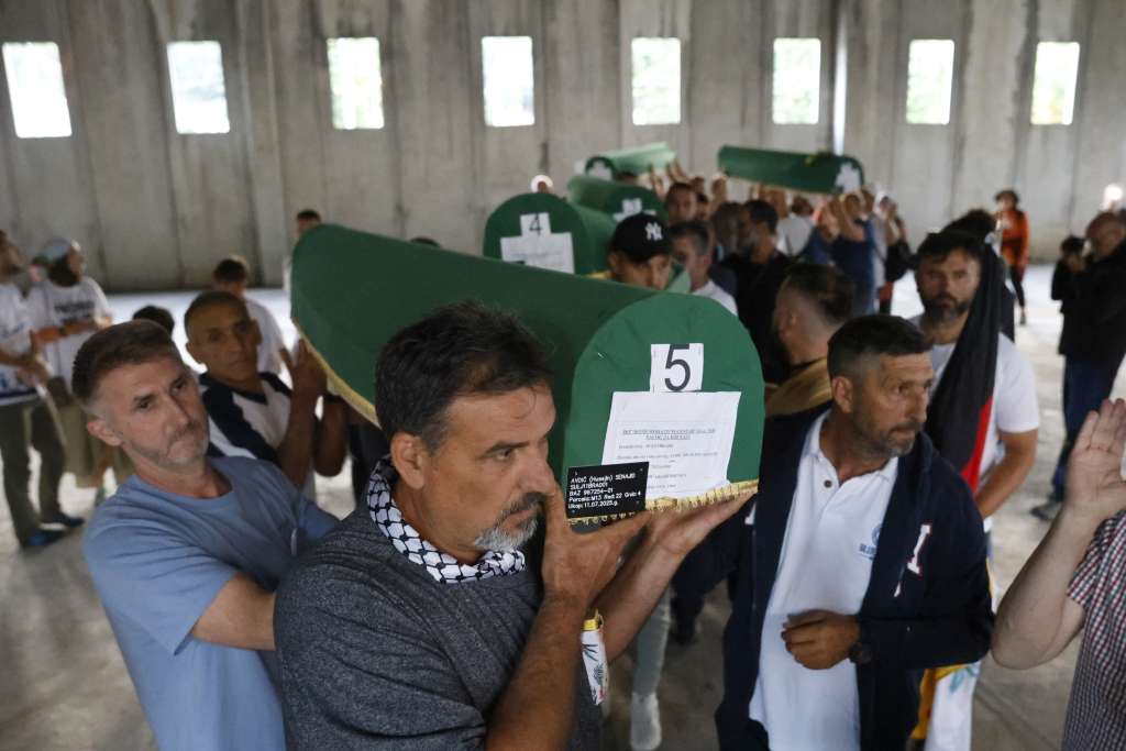 SREBRENICA, 10. jula (FENA) - Učesnici Marša mira i članovi porodica iznijeli su večeras tabute s posmrtnim ostacima žrtava genocida na musalu Memorijalnog centra Srebrenica-Potočari.