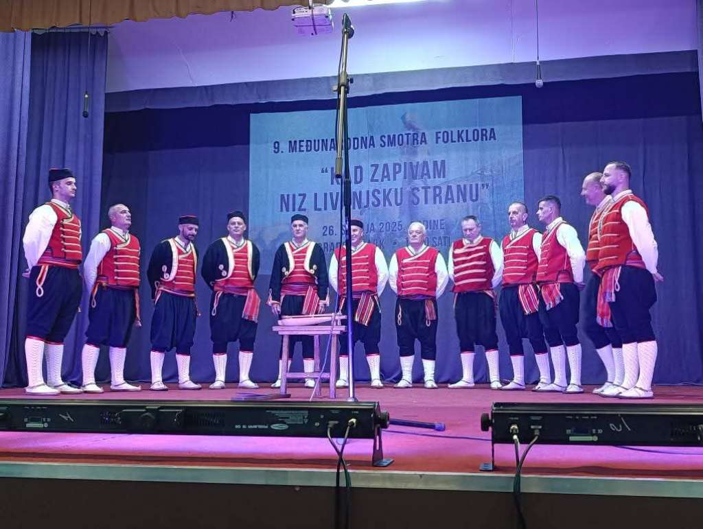 LIVNO, 27. srpnja (FENA) - U sklopu Livanjskog kulturnog ljeta, u subotu je ispred dvorane Narodnog sveučilišta u Livnu održana 9. smotra folklora pod nazivom "Kad zapivam niz livanjsku stranu", u organizaciji Turističke zajednice Grada Livna, KUD-a Rudine župa Vidoši Livno i KUD-a Tribanj Bila Livno, a pod pokroviteljstvom gradonačelnika Darke Čondrića.