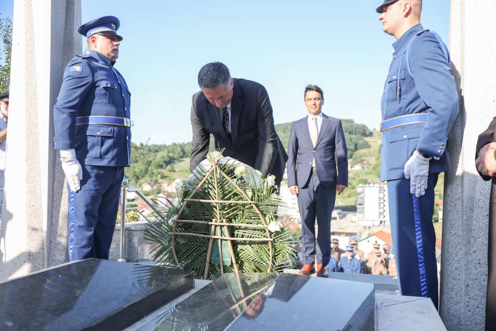 BUŽIM, 15 August (FENA) – Member of the Presidency of Bosnia and Herzegovina Denis Bećirović laid a wreath today in Bužim at the Turbe of Izet Nanić and the fallen general of the 505th Viteška Mountain Brigade of the Army of the Republic of Bosnia and Herzegovina.