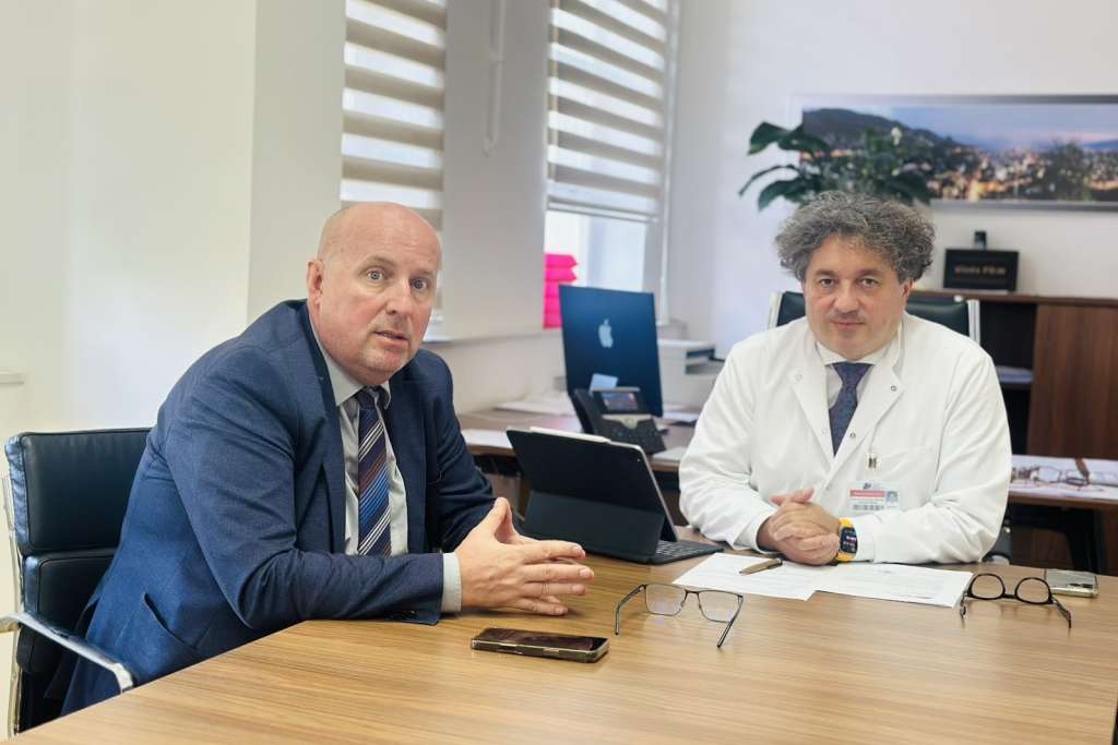 SARAJEVO, 17. septembra (FENA) - Ministar zdravstva Kantona Sarajevo Enis Hasanović posjetio je Klinički centar Univerziteta u Sarajevu (KCUS), gdje je razgovarao s direktorom Alenom Pilavom o trenutnom stanju i budućim planovima razvoja ove zdravstvene ustanove.