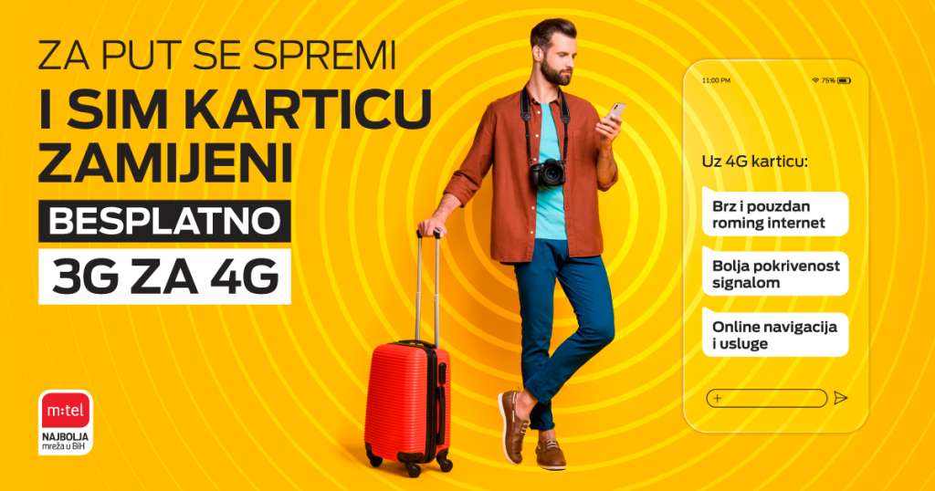 BANJALUKA, 17. septembra (FENA) – Kompanija m:tel svim svojim korisnicima omogućava besplatnu zamjenu starih 3G SIM kartica za 4G verziju - i to na svim prodajnim mjestima.