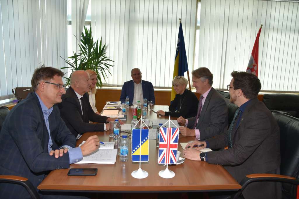 SARAJEVO, 18. septembra (FENA) - Zamjenik ministra sigurnosti Bosne i Hercegovine Ivica Bošnjak razgovarao je danas u Sarajevu s ambasadorom Ujedinjenog Kraljevstva Velike Britanije i Sjeverne Irske u Bosni i Hercegovini Julianom Reillyjem. Tema razgovora bila je saradnja i jačanje partnerstva te zajednički doprinos regionalnoj sigurnosti.