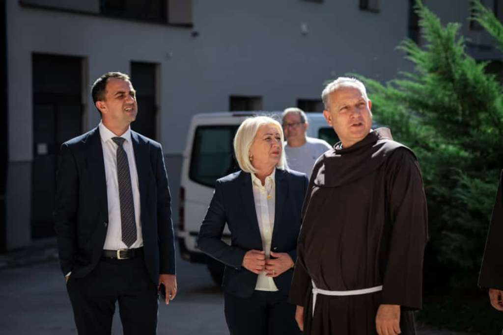 SARAJEVO, 22. septembra (FENA) - Predsjedateljica Vijeća ministara Bosne i Hercegovine Borjana Krišto posjetila je danas franjevački provincijalat Bosne Srebrene u Sarajevu, gdje je zajedno s provincijalom fra Zdravkom Dadićem obišla radove na projektu proširenja Franjevačkog studentskog centra.