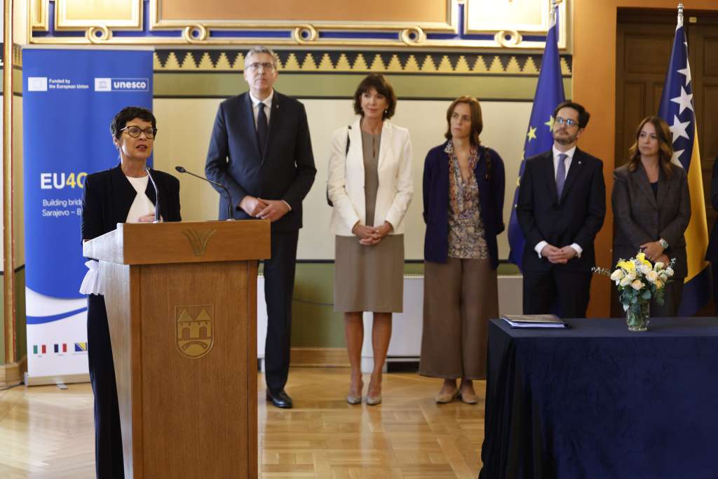 SARAJEVO, September 22 (FENA) – Culture and art are what connect people, said European Union Enlargement Commissioner Marta Kos during her visit to Sarajevo City Hall, where she was welcomed by Mayor Samir Avdić for the official launch of the Ars Aevi Contemporary Art Museum construction project.
