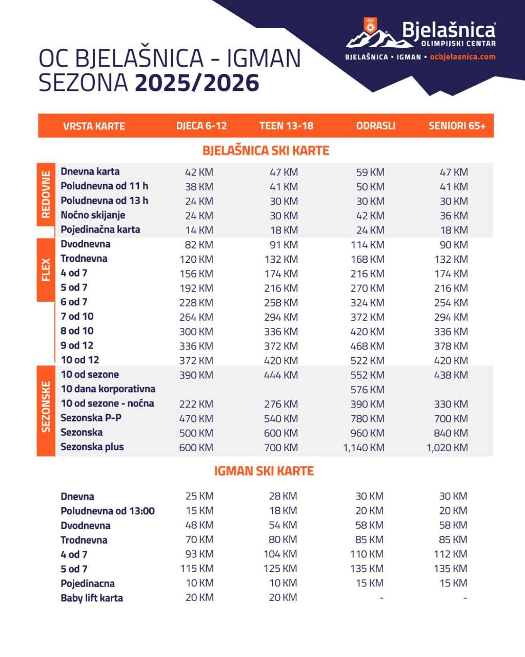 SARAJEVO, 24. septembra (FENA) - Kantonalno javno preduzeće ZOI’84 najavilo je početak pretprodaje sezonskih ski karata za zimsku sezonu 2025/26 koja će za odraslu osobu do 15. oktobra iznositi 580 KM, dok će za djecu do 12 godina cijena iznositi 320 KM.