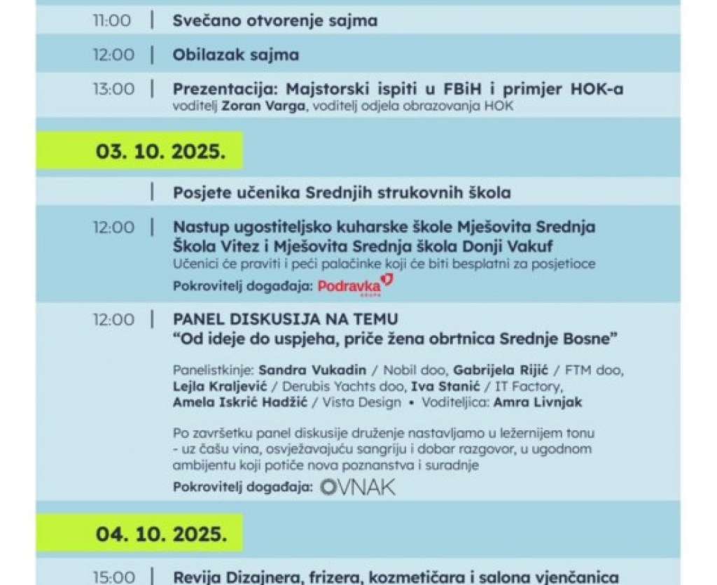 TRAVNIK, 30. rujna (FENA) - Prvi sajma obrtništva "Obrt Expo SB '25" održat će se od 2. do 4. listopada u prostorijama PSKC Pirota u Travniku, a više od 50 izlagača iz Srednjobosanskog kantona i susjednih regija predstavit će široku ponudu proizvoda i usluga iz različitih oblasti, od rukotvorina, dizajna i mode do tehnike i gastronomije.