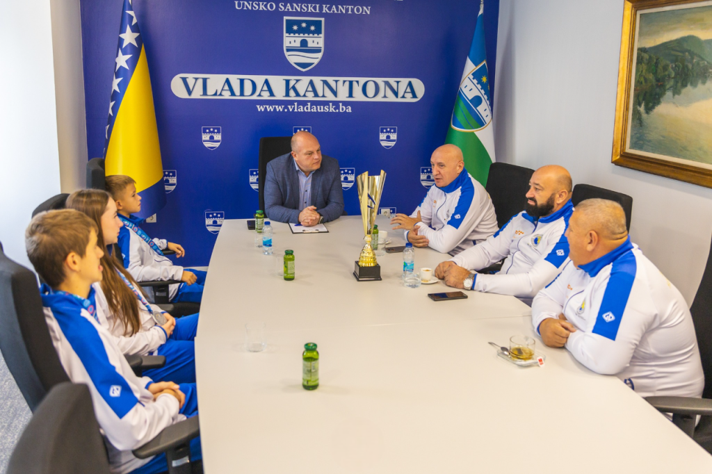 BIHAĆ, 6. oktobra (FENA) - Premijer Unsko-sanskog kantona Mustafa Ružnić primio je danas predstavnike Kickboxing saveza Bosne i Hercegovine i članove državne reprezentacije koji su na nedavno održanom Evropskom prvenstvu za juniore, kadete i djecu u Italiji ostvarili zapažene rezultate. Tokom prijema istaknuto je da su mladi sportisti iz Unsko-sanskog kantona ponovo pokazali vrhunski kvalitet, borbenost i sportski duh, te na najbolji način predstavljali Bosnu i Hercegovinu na međunarodnoj sceni.
