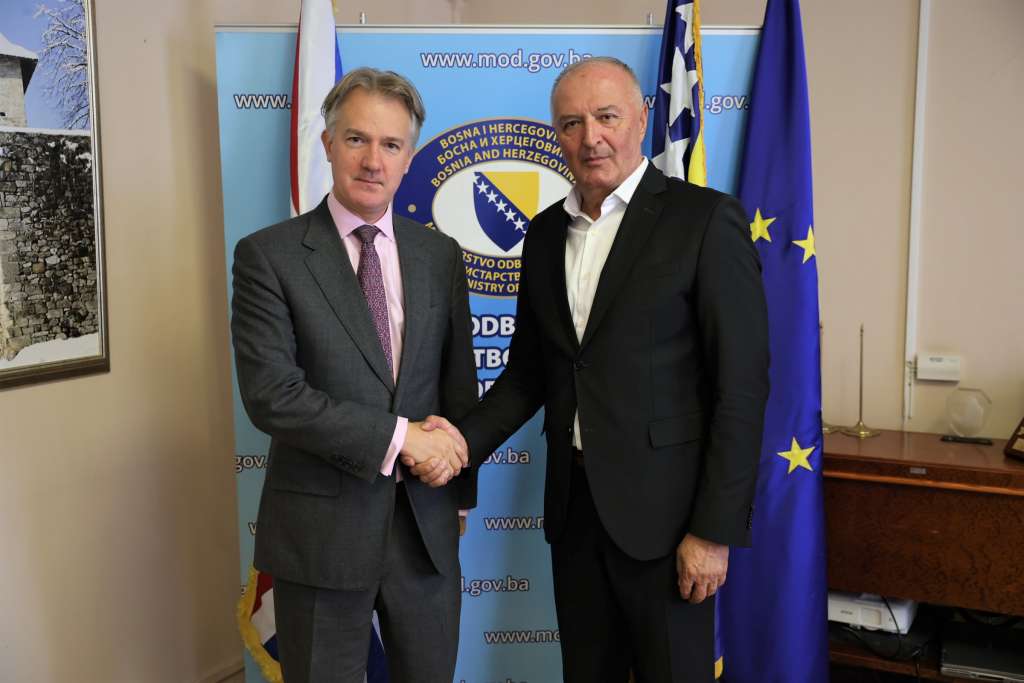SARAJEVO, 10. oktobra (FENA) - Zamjenik predsjedavajuće Vijeća ministara Bosne i Hercegovine i ministar odbrane BiH Zukan Helez sastao se danas s ambasadorom Ujedinjenog Kraljevstva Velike Britanije i Sjeverne Irske Julianom Reillyjem.