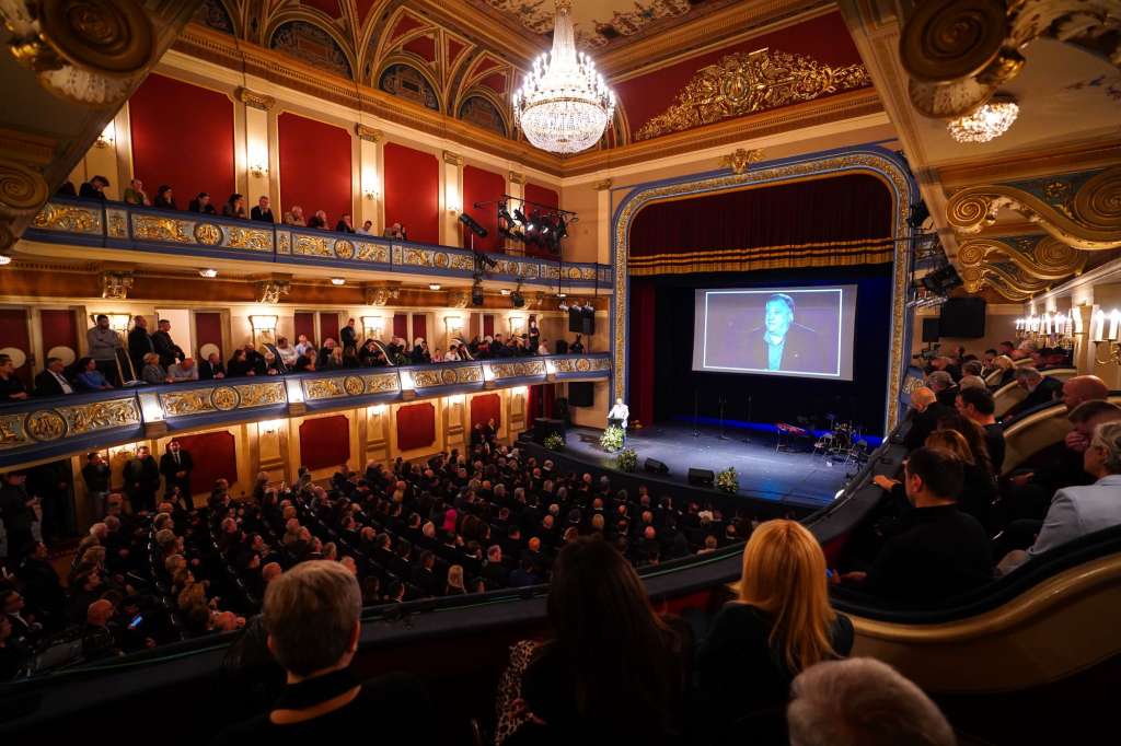SARAJEVO, 13. oktobra (FENA) - Komemorativna sjednica u čast Halida Bešlića, legende narodne muzike i jednog od najvoljenijih izvođača na prostoru bivše Jugoslavije, održana je danas u Narodnom pozorištu Sarajevo. U prepunoj sali, porodica, prijatelji, saradnici i poštovaoci oprostili su se od čovjeka čiji je glas obilježio generacije, a čija pjesma ostaje trajna uspomena narodu kojem je pripadao.