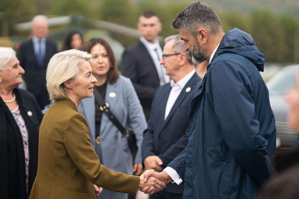 SREBRENICA, 14. oktobra (FENA) - Predsjednica Evropske komisije Ursula von der Leyen započela je danas svoju zvaničnu posjetu Bosni i Hercegovini obilaskom Memorijalnog centra Srebrenica.