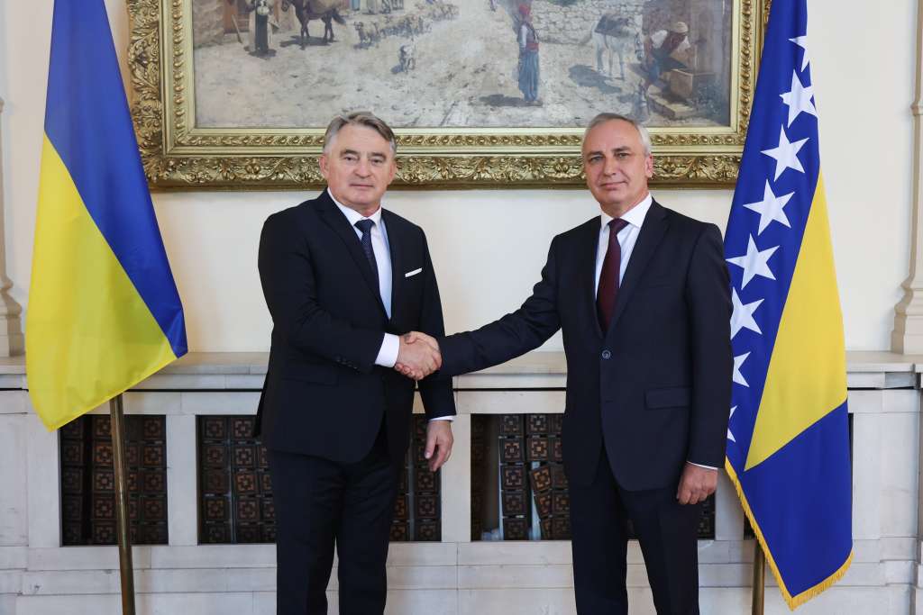 SARAJEVO, 16. oktobra (FENA) - Predsjedavajući Predsjedništva BiH Željko Komšić primio je akreditivno pismo ambasadora Ukrajine u BiH Volodymyra Bachynskog.