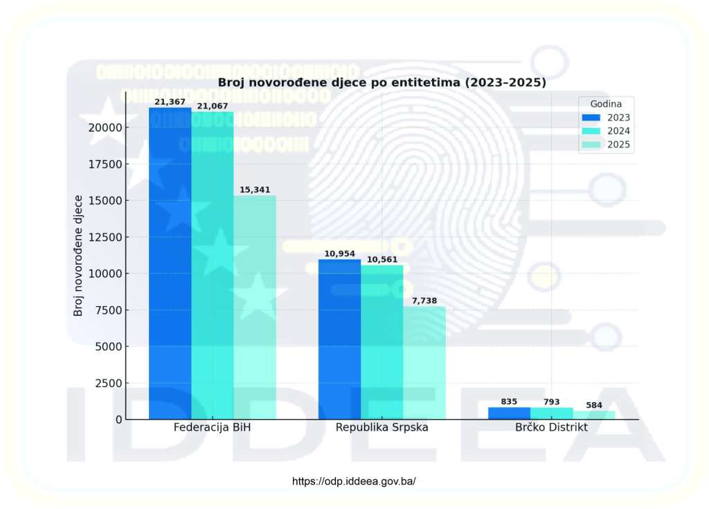 SARAJEVO, 29. oktobra (FENA) - Prema podacima iz evidencija koje održava Agencija za identifikacione dokumente, evidenciju i razmjenu podataka Bosne i Hercegovine (IDDEEA BiH), u periodu od 2023. do 2025. godine zabilježen je kontinuiran pad nataliteta u cijeloj državi.