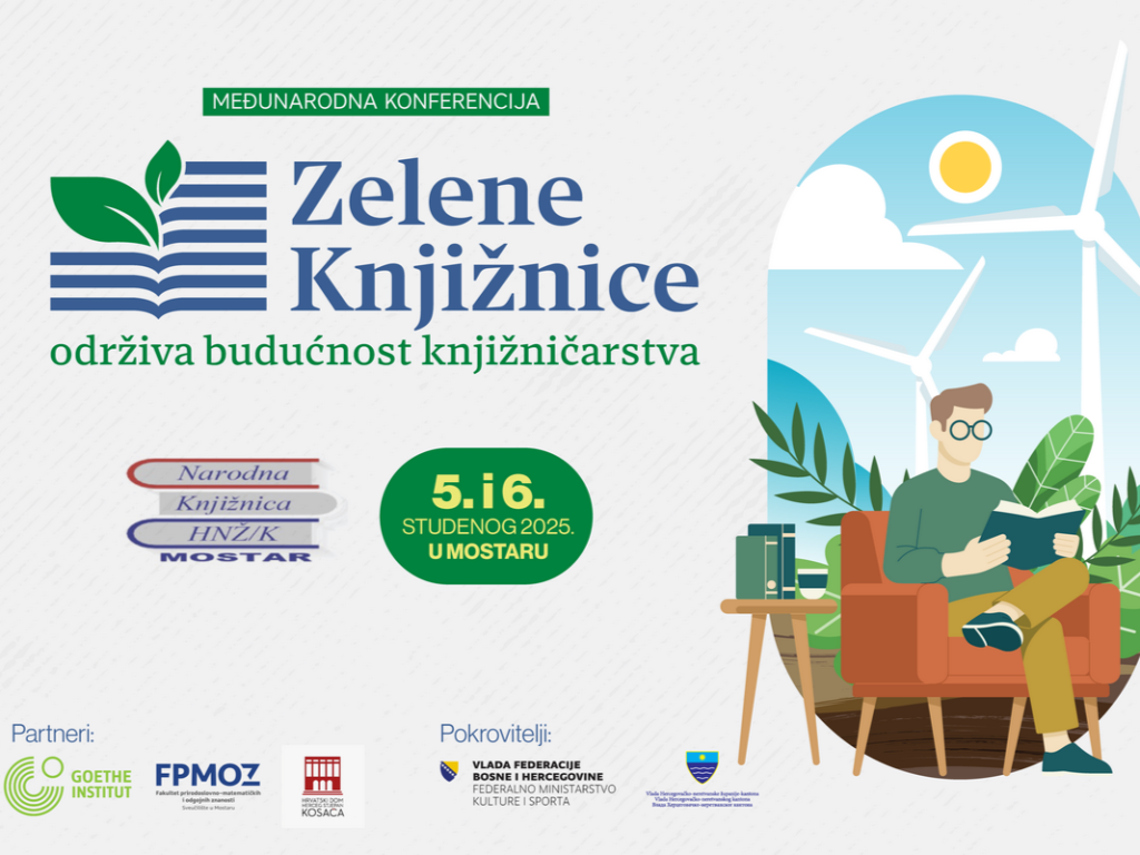 MOSTAR, 4. studenoga (FENA) - Prva međunarodna konferencija „Zelene knjižnice - održiva budućnost knjižničarstva“ održat će se 5. i 6. studenoga u Galeriji kraljice Katarine u Hrvatskom domu hercega Stjepana Kosače u Mostaru, u organizaciji Narodne knjižnice HNŽ/K Mostar.