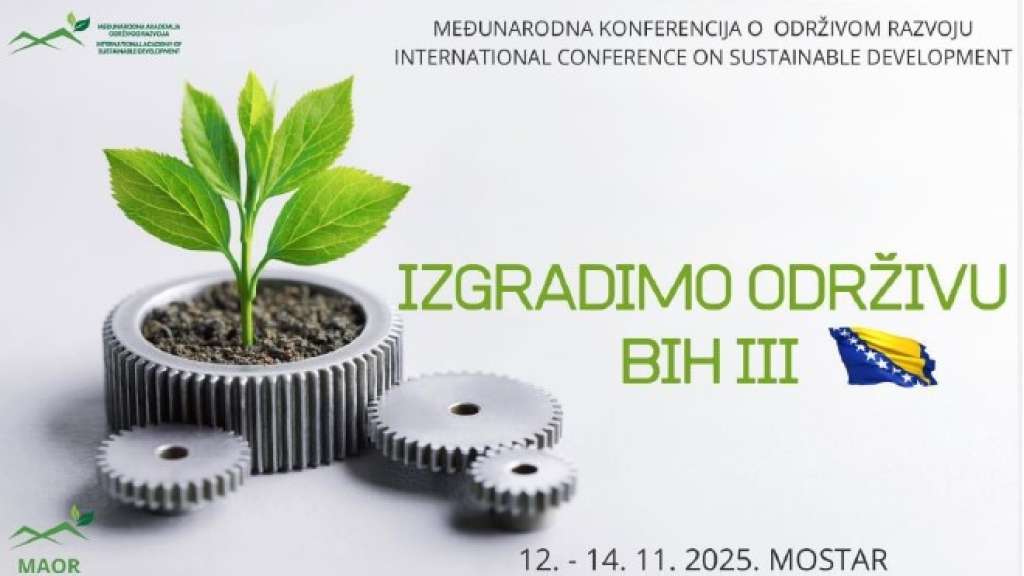 MOSTAR, 11. studenoga (FENA) - Međunarodna akademija održivog razvoja (MAOR) u partnerstvu s Vladom Hercegovačko-neretvanske županije (HNŽ), Fondom za zaštitu okoliša HNŽ-a, Ministarstvom trgovine, turizma i zaštite okoliša HNŽ-a i Gradom Mostarom organizira trodnevnu, treću po redu međunarodnu konferenciju "Izgradimo održivu BiH III", koja će biti otvorena u srijedu, 12. studenoga, s početkom u 9.30 sati u Hotelu Mostar.