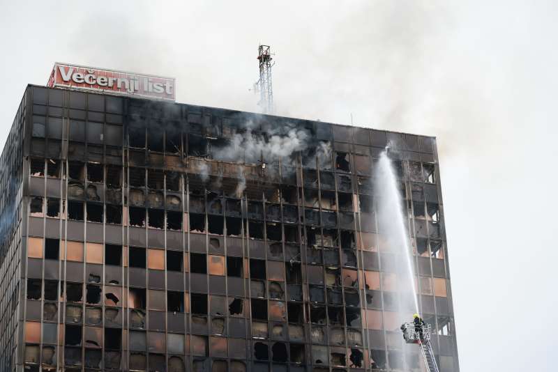 ZAGREB, 19. studenoga (FENA) - Vatrogasci su unutarnjim i vanjskim pregledom opožarenog Vjesnikovog nebodera u Zagrebu uočili manja izdimljavanja od šestog do devetog kata i na zadnjem katu, ali ga još ne gase dok statičari ne utvrde postoje li za to sigurnosni uvjeti.