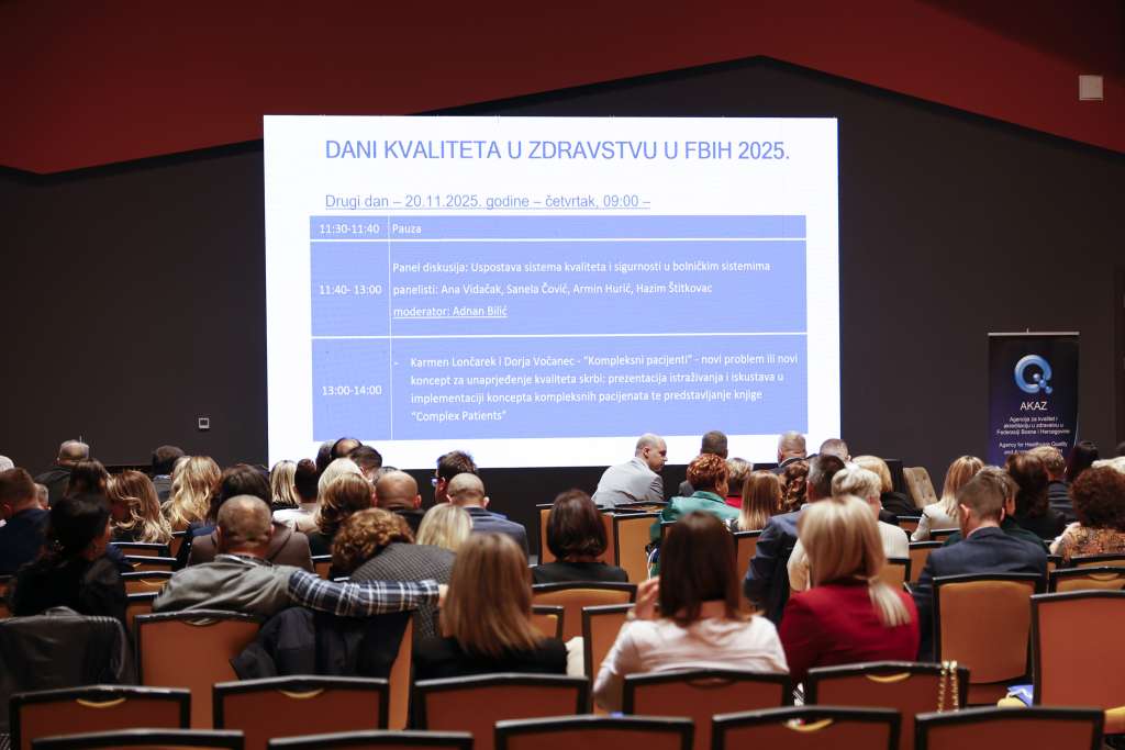 SARAJEVO, 19. novembra (FENA) - Manifestacija "Dani kvaliteta u zdravstvu u FBiH 2025“, koju povodom 20 godina rada i osnivanja organizira Agencija za kvalitet i akreditaciju u zdravstvu Federacije Bosne i Hercegovine (AKAZ), svečano je otvorena večeras. Događaj je namijenjen osoblju zdravstvenih ustanova.